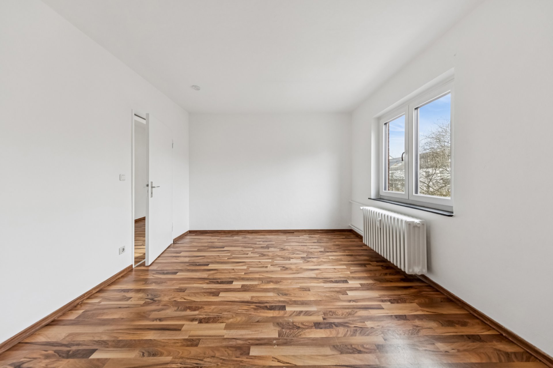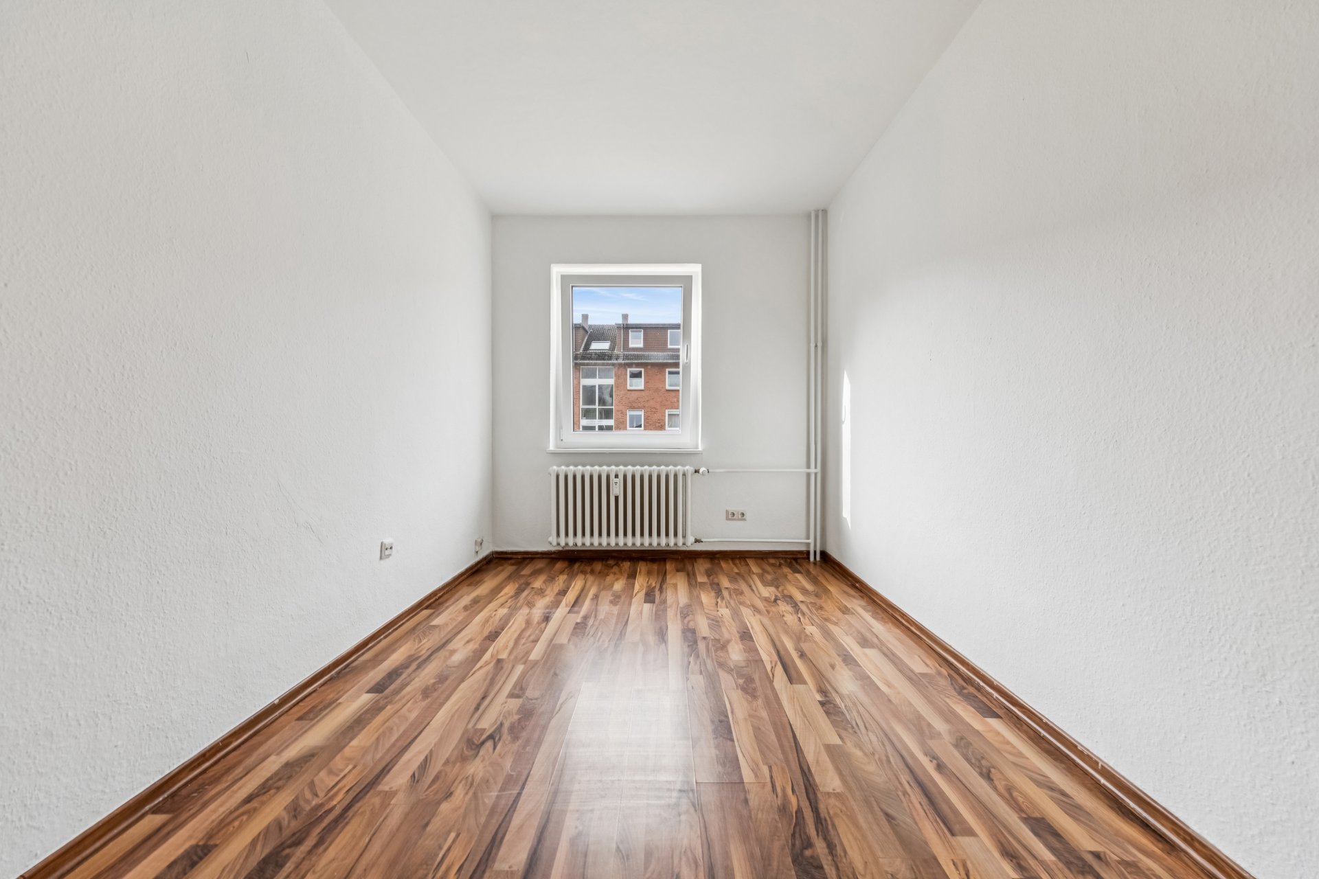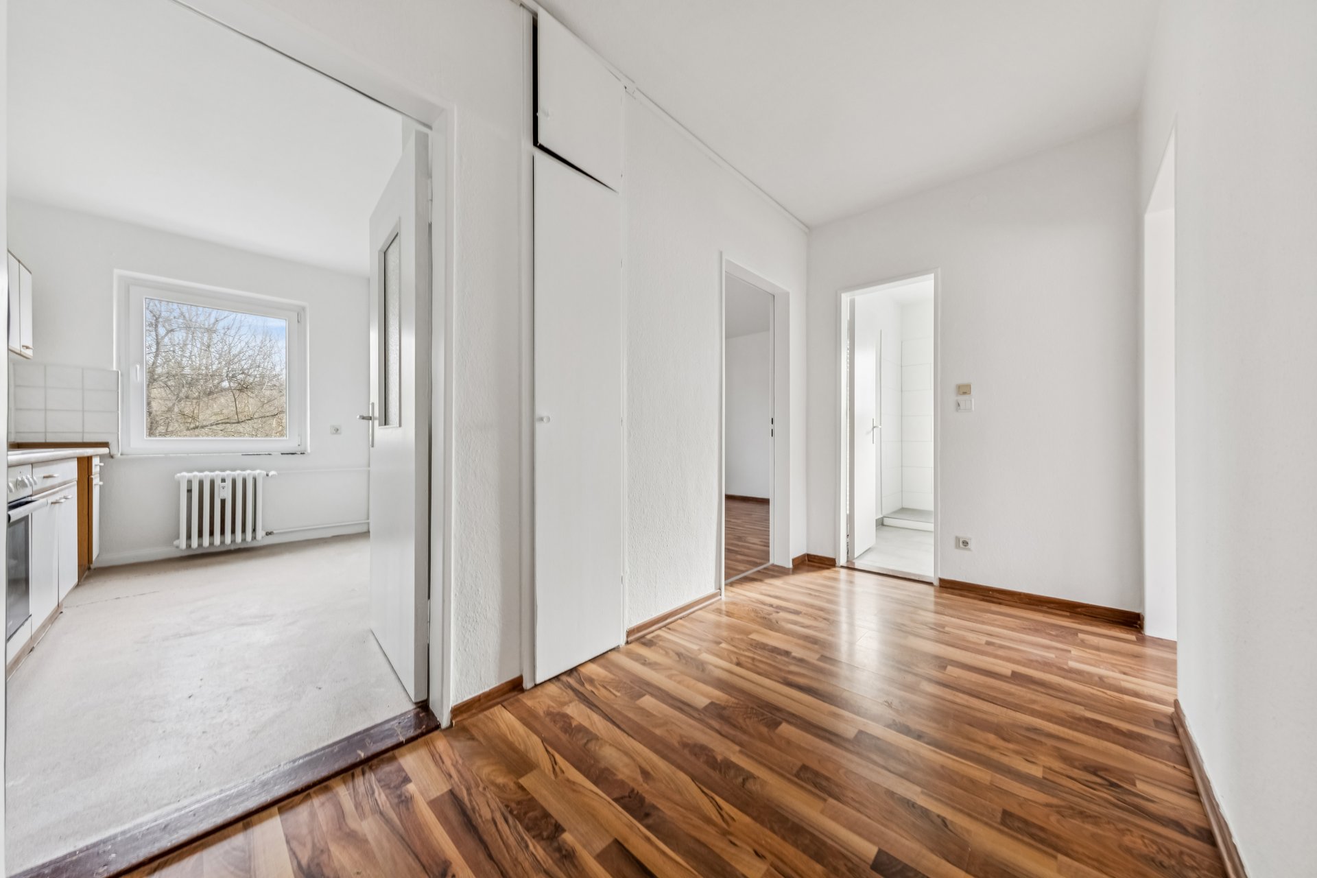 From the hallway you get access to all other rooms of the apartment, a bathroom with tub and bright kitchen with tiled floor. The remaining rooms are equipped with high-quality laminate flooring throughout.