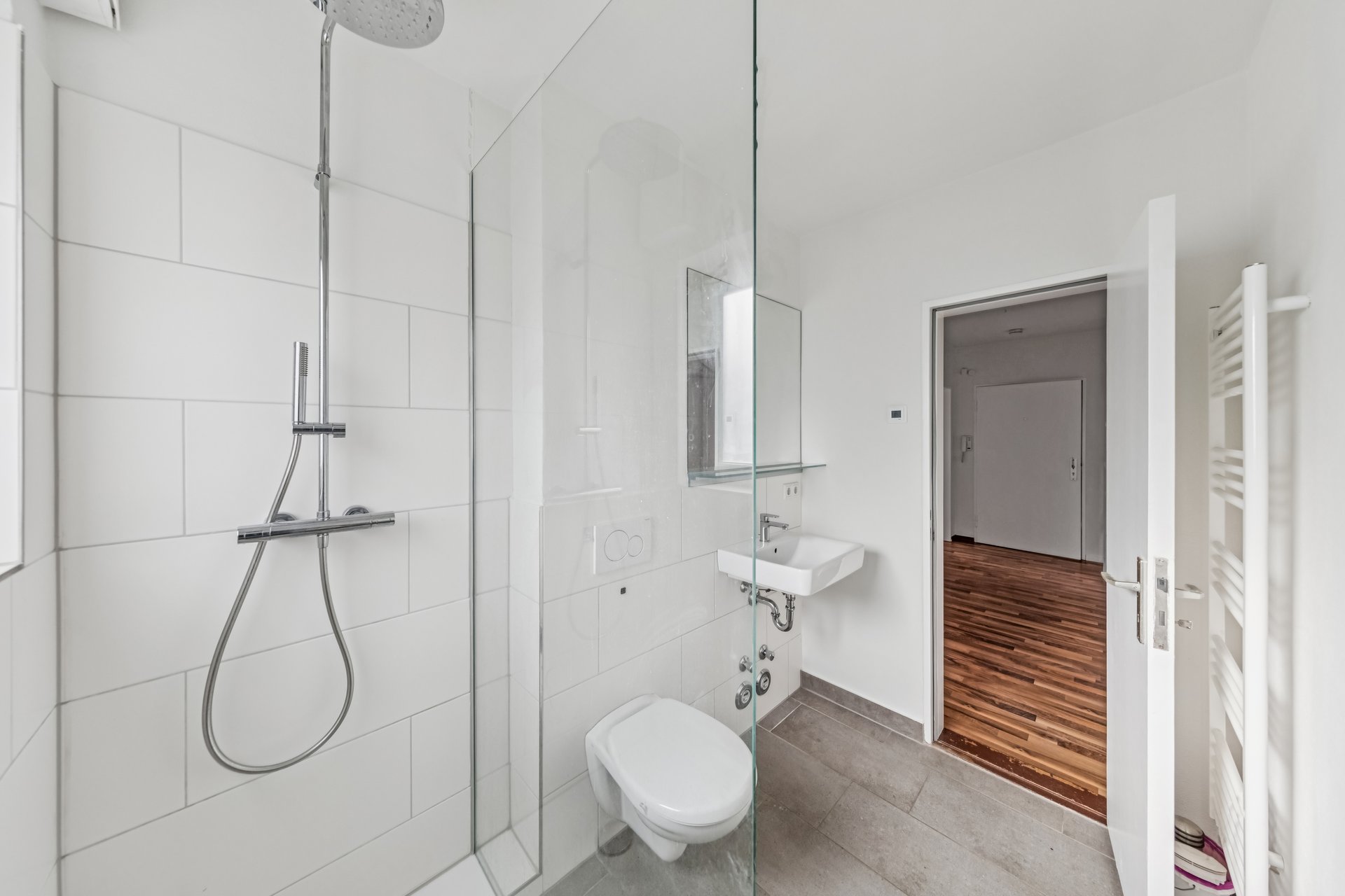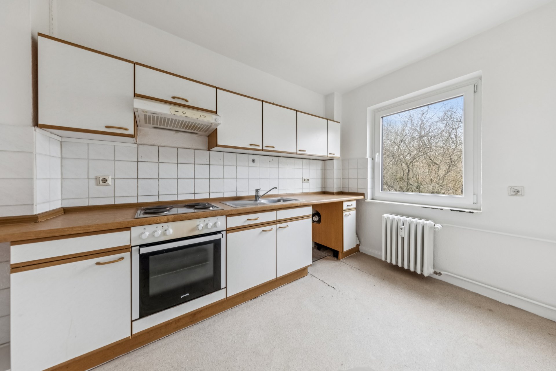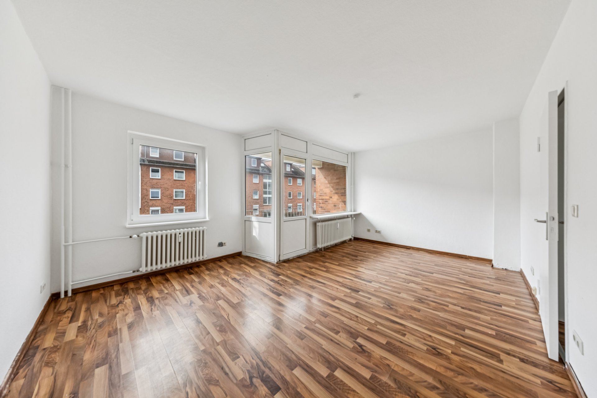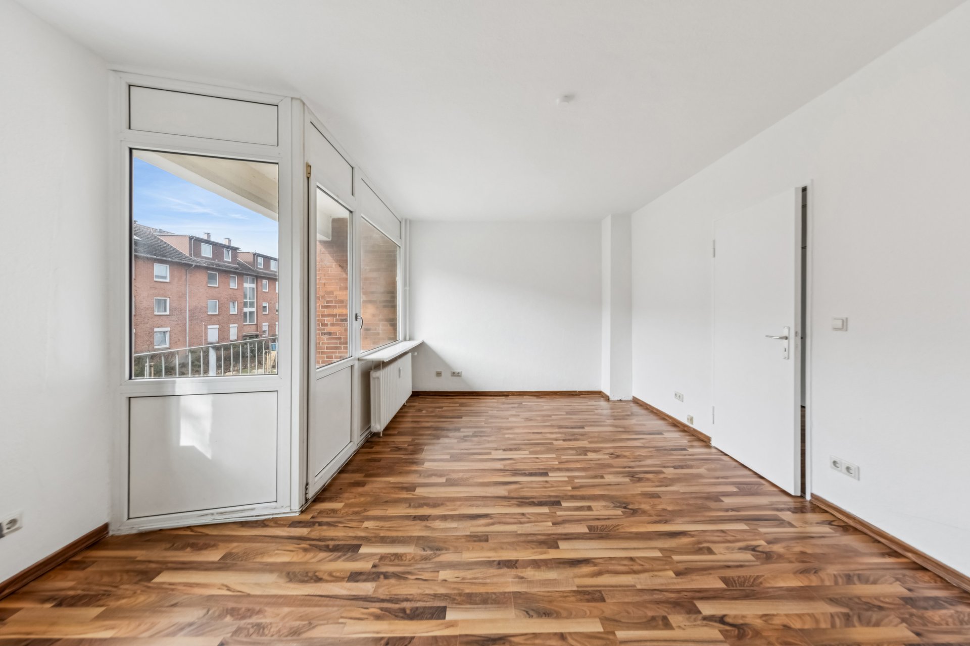 From the hallway you get access to all other rooms of the apartment, a bathroom with tub and bright kitchen with tiled floor. The remaining rooms are equipped with high-quality laminate flooring throughout.